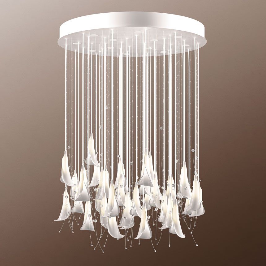 Глянцевые подвесы коллекции Flora изготовлены из костяного фарфора в виде цветов каллы. Коллекция "Flora" вдохновлена формой каллы — крупный фарфоровый бутон светится изнутри благодаря оптоволокну. Неповторимый образ к которому хочется прикоснуться, почувствовать прохладную гладкую поверхность и заглянуть внутрь. Стеклянные капли создают эффект воды, а вертикальные линии идеально подходят для высоких потолков. Люстра Sagarti – арт-объект в центре вашего интерьера.