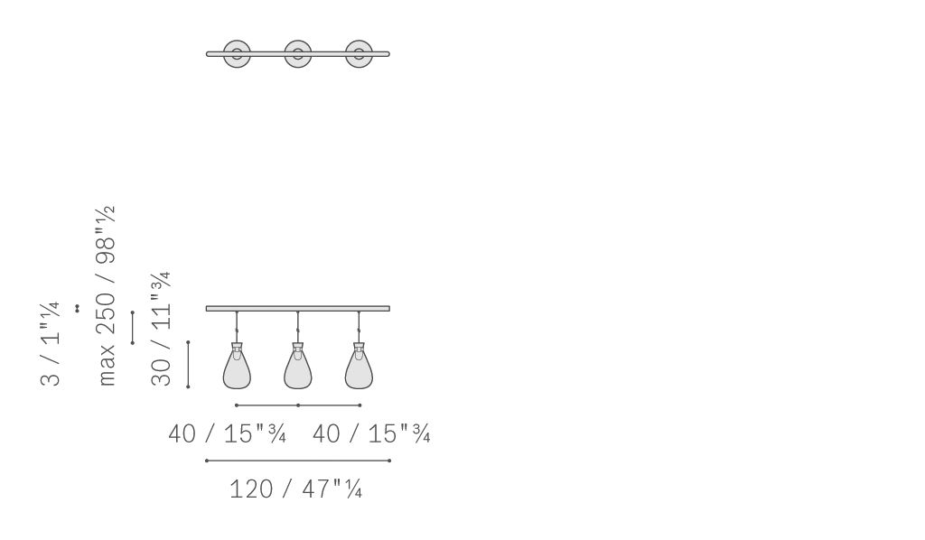 Линейная люстра Soffi с большими размерами до 2500 мм, выполненная в духе предыдущих версий. Количество плафонов зависит от конкретной комплектации.