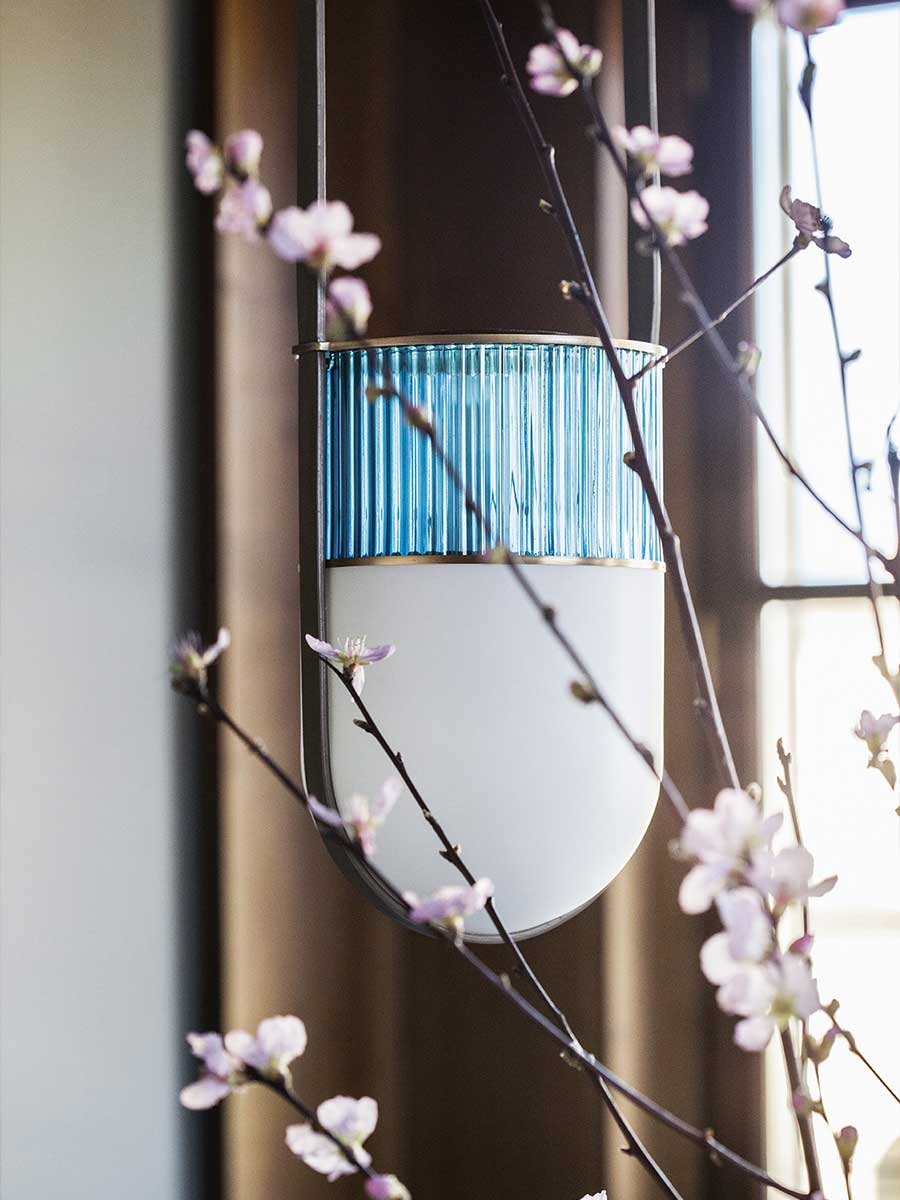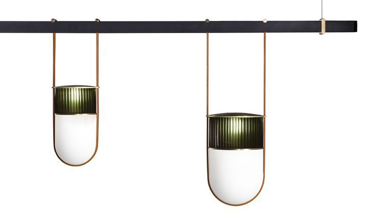 Светильник подвешивается на кожаном ремешке Cuoio Saddle Extra, доступном в двух вариантах отделки: «Кэмел» и «Тау», с окрашенным необработанным швом в тон и фирменным логотипом Poltrona Frau. В новых напольных и подвесных версиях ремешок, на котором светильник подвешивается, удерживается металлической петлей с отделкой под матовую латунь. Коллекция Xi включает различные типы светильников: подвесные светильники, лампы с креплением на горизонтальную штангу и без неё, напольные лампы и настольные лампы. В подвесной версии, доступной в различных комбинациях с одной или несколькими лампами, светильники Xi крепятся к горизонтальной штанге регулируемой высоты, доступной в двух вариантах длины: 130 см и 180 см, с матовым серым покрытием цвета оружейной стали. Электрические кабели имеют чёрное покрытие. Рельсовая конструкция штанги позволяет перемещать светильники по горизонтали и фиксировать их в нужном положении. В версии с настольной лампой светильник представляет собой большой фонарь, расположенный на металлическом основании с отделкой под натуральную латунь. Дополнительный кожаный ремень поддерживает лампу и может использоваться в качестве ручки при её перемещении. Яркость регулируется с помощью сенсорной системы диммера. Напольный светильник состоит из одного очень большого подвесного светильника. Опорная планка выполнена из матовой вороненой стали. Кожаный ремешок Cuoio Saddle Extra, к которому крепится светильник, продолжается до основания, закрывая нижнюю часть стального крепления. Основание состоит из круглого основания из полуполированного мрамора Nero Marquina, увенчанного металлическим противовесом. Мраморное основание имеет отделку из листового металла. Все металлические детали основания имеют матовую вороненую отделку. Версия Extra Large Pendant состоит из одного очень большого фонаря, подвешенного с помощью кожаного ремня Cuoio Saddle Extra. Розетка, используемая для крепления светильника к потолку, изготовлена из алюминия с матовой латунной отделкой.
