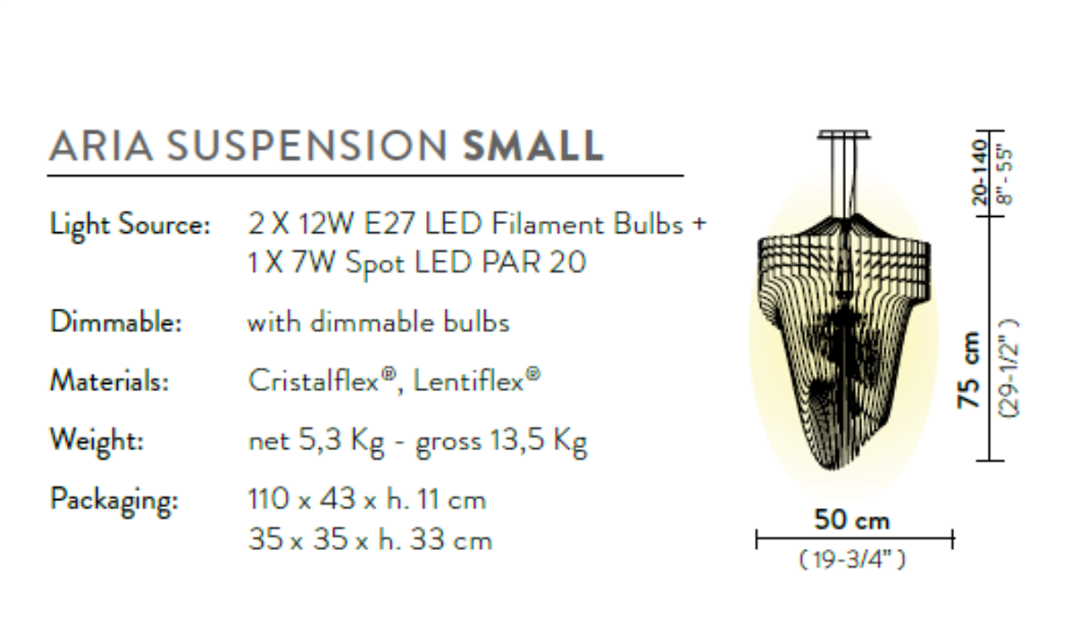Светящаяся архитектура Захи Хадид — дальновидная, текучая и динамичная, она привносит революционную и знаковую семантику знаменитого архитектора в жилые и общественные интерьеры; результатом становится гармония существ и окружающего их пространства. 25-слойная версия светильника доступна в прозрачном или золотом исполнении, которое отбрасывает преломления на стену за ней.