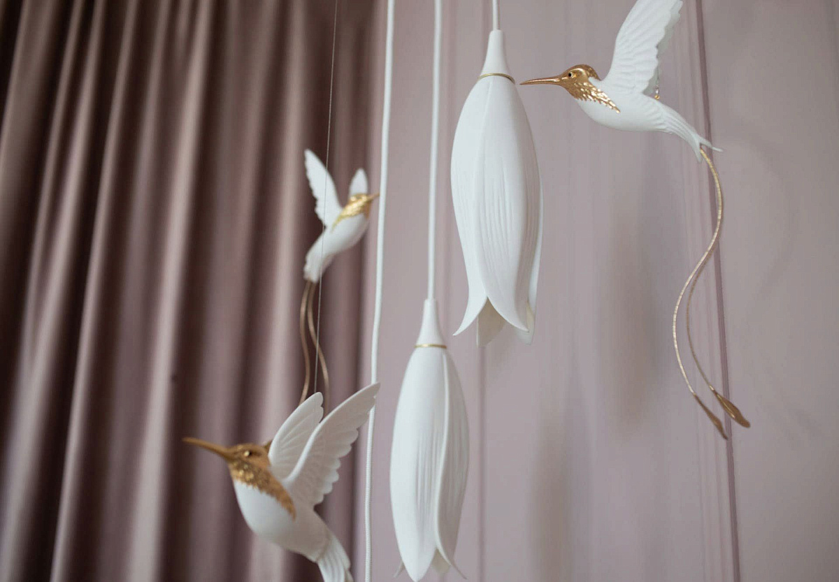 Материалы: бисквитный костяной фарфор, кристаллы Swarovski, золотой люстр, окрашенный металл