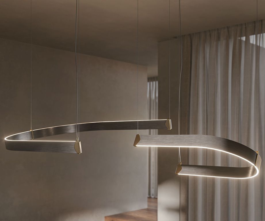 BLUEBELL - стильный подвесной светодиодный светильник из новой коллекции 2024 года. Светильник состоит из металлического гнутого элемента и встроенной светодиодной ленты. Дополнительно можно заказать пульт и ресивер (расчет у менеджера интернет-магазина). По желанию Вы можете скомбинировать между собой два или три подвесных элемента на одном общем основании. Дизайн модели разработан: Studio Kronos. Фабрика: Cattelan Italia. Страна производства: Италия.