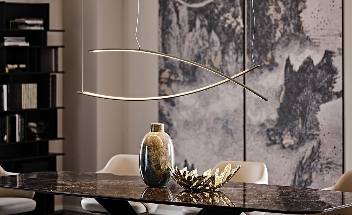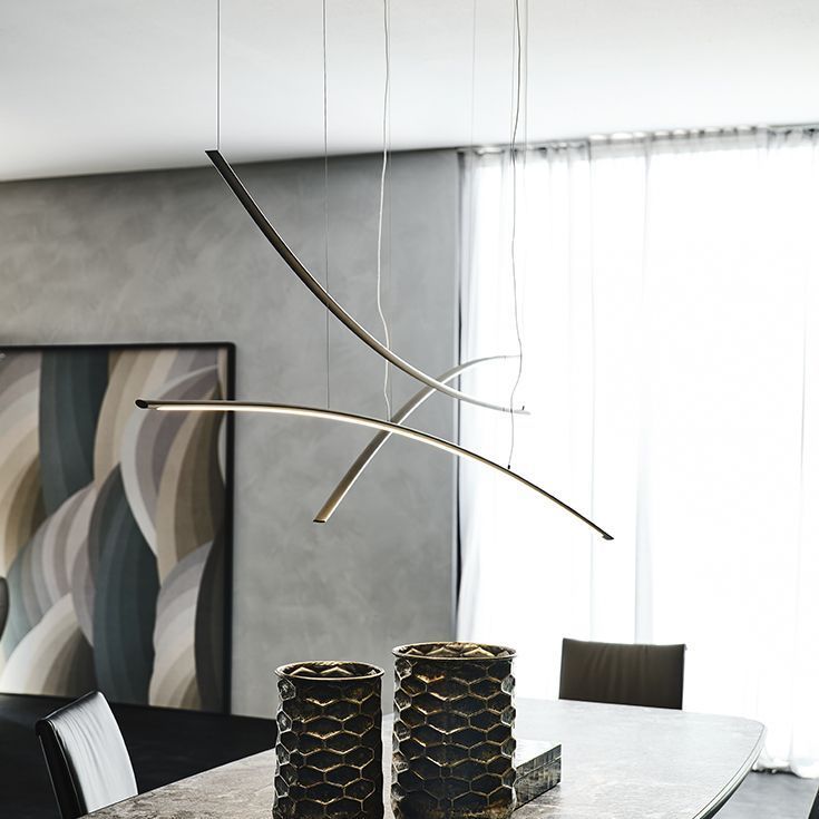 Katana - это современный потолочный светильник с потрясающим дизайном, созданный Джорджио Каттеланом. Несмотря на его своеобразную форму, это изящное и минималистичное украшение, идеально подходит для оригинального дополнения современной гостиной.Благодаря своей простоте и модульности эта дизайнерская лампа может принимать различные конфигурации, отражающие индивидуальный вкус.Изготавливается в двух вариантах: Katana и Katana Magnum. Вторая такая же удлиненная, но еще большего размера, как следует из названия. Оба варианта делятся на версии вверх и вниз в зависимости от направления дуги. То, что делает эту современную лампу индивидуально настраиваемой - это возможность создавать композиции, объединяя все доступные версии в одну яркую, ультрасовременную люстру.