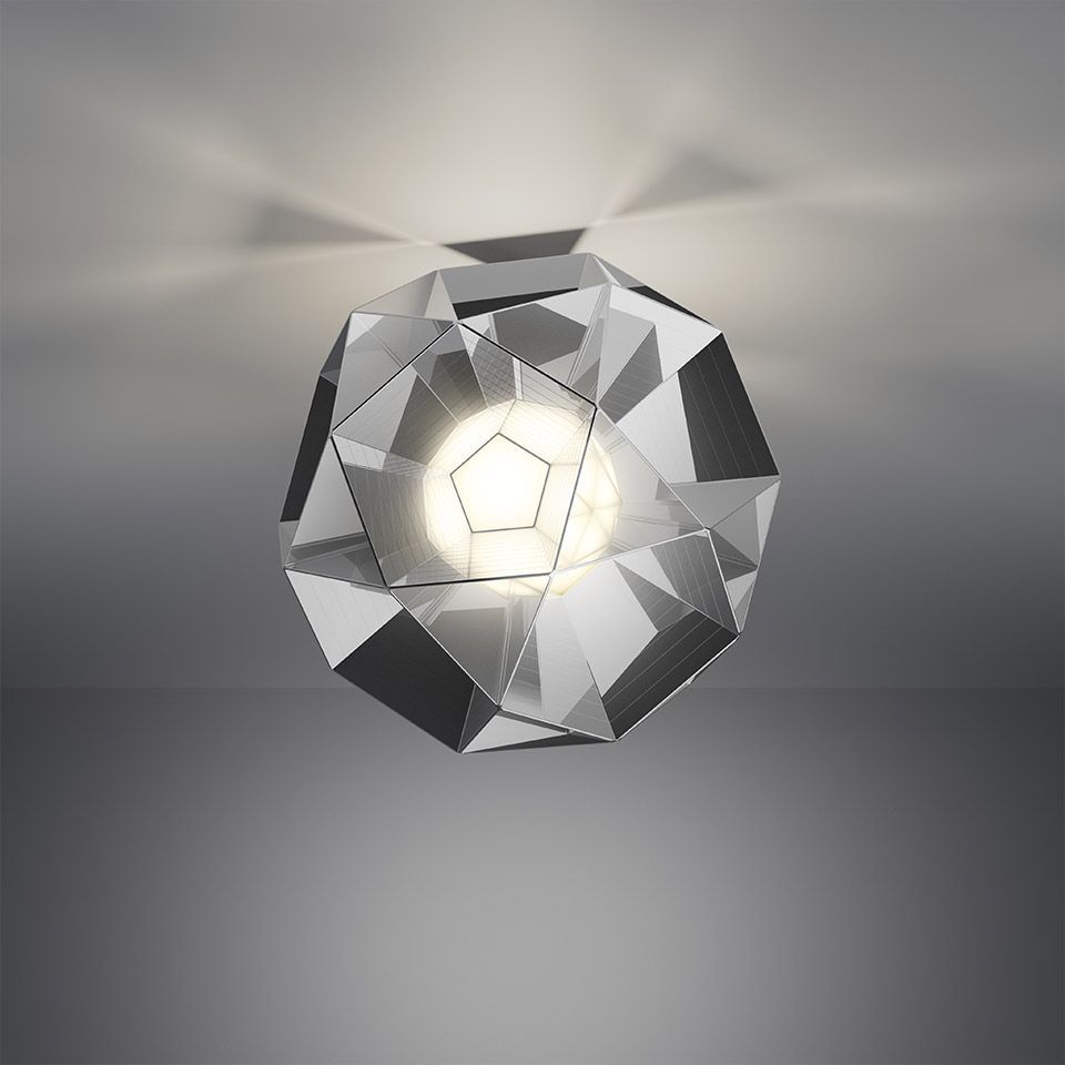 Arctic — это коллекция светильников, которые переосмысливают реальность посредством света — как своего собственного, так и света природы и окружающей среды. Строгие геометрические формы объединяются в модульные конструкции, которые распадаются и преобразуются, играя со слоями отражения и прозрачности. Итоговая структура напоминает архимедово тело без видимых внешних граней, построенное из пятиугольных элементов, исходящих из центральной точки, где расположена рассеивающая сфера.