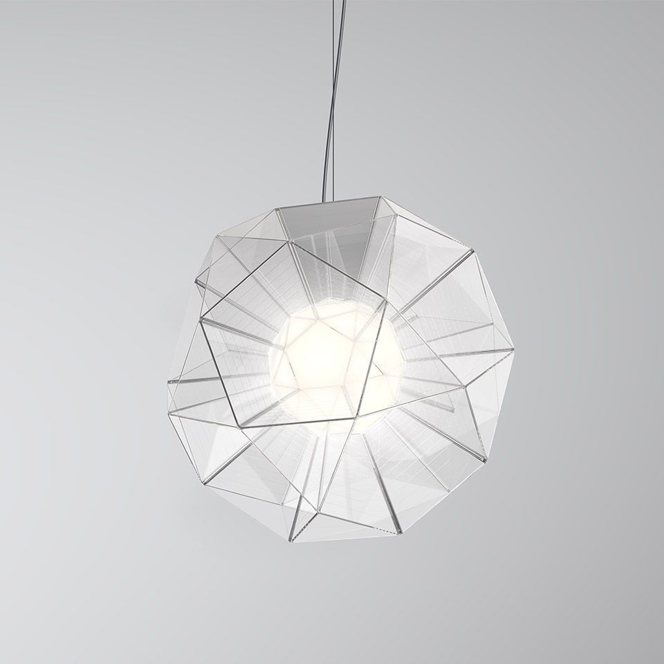 Arctic — это коллекция светильников, которые переосмысливают реальность посредством света — как своего собственного, так и света природы и окружающей среды. Строгие геометрические формы объединяются в модульные конструкции, которые распадаются и преобразуются, играя со слоями отражения и прозрачности. Итоговая структура напоминает архимедово тело без видимых внешних граней, построенное из пятиугольных элементов, исходящих из центральной точки, где расположена рассеивающая сфера.