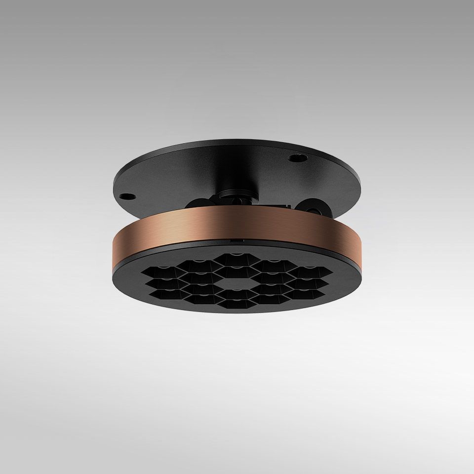 Даунлайт Helgoland подтверждает эффективность своей конструкции даже в регулируемом исполнении, расширяя возможности его использования и интеграции в пространство. Оптический модуль толщиной всего 12,5 мм становится универсальным источником света, совместимым с различными аксессуарами и теперь регулируемым. Благодаря новой конструкции этот элемент превращается из простого даунлайта в направленный точечный светильник. Полностью интегрированный в поверхность, он может быть выдвинут, наклонен без ограничений благодаря двухшарнирному механизму и повернут на 359° вокруг вертикальной оси. Он доступен в вариантах с окантовкой, без окантовки и накладным монтажом.