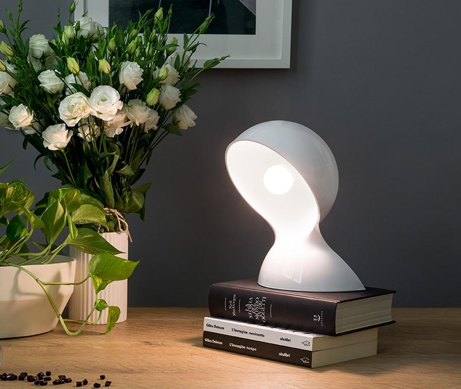 Настольная лампа Artemide Dalù из поликарбоната, корпус цельный. Направьте освещение по диагонали вниз. Для лампы Е14. С переключателем на кабеле.