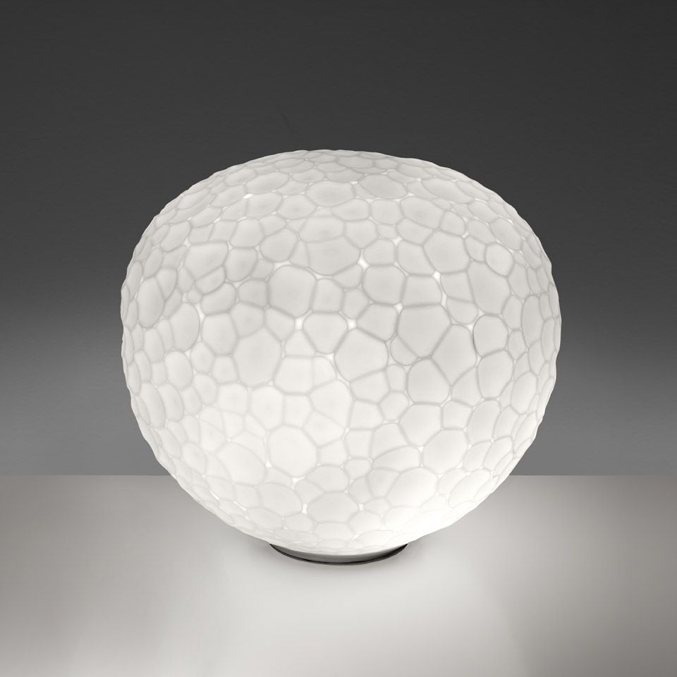 Двухслойный рассеиватель из художественного стекла изготовлен вручную с использованием техники выдува из формы с последующей шлифовкой, а конечный результат напоминает старинное муранское искусство стекла «баттуто» своим фактурным, кованым видом.