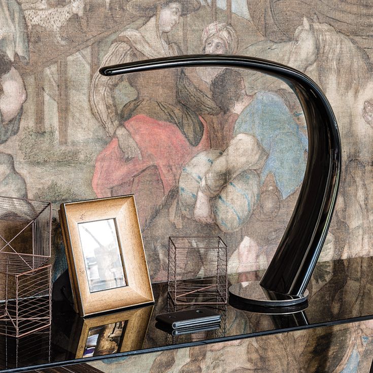 Привлекательный дизайн современной настольной лампы Mamba делает ее декоративным, утонченным и оригинальным аксессуаром. Структура дуговой лампы, переменная толщина и скошенные края создают мягкую и извилистую форму естественного элемента. Mamba, предназначенная для освещения стола или уголка для чтения, также может быть размещена на серванте, создавая приятный контраст между геометрией мебели и чувственной формой этой дизайнерской настольной лампы. Корпус выполнен из окрашенного полиуретана, а основание - из металла.