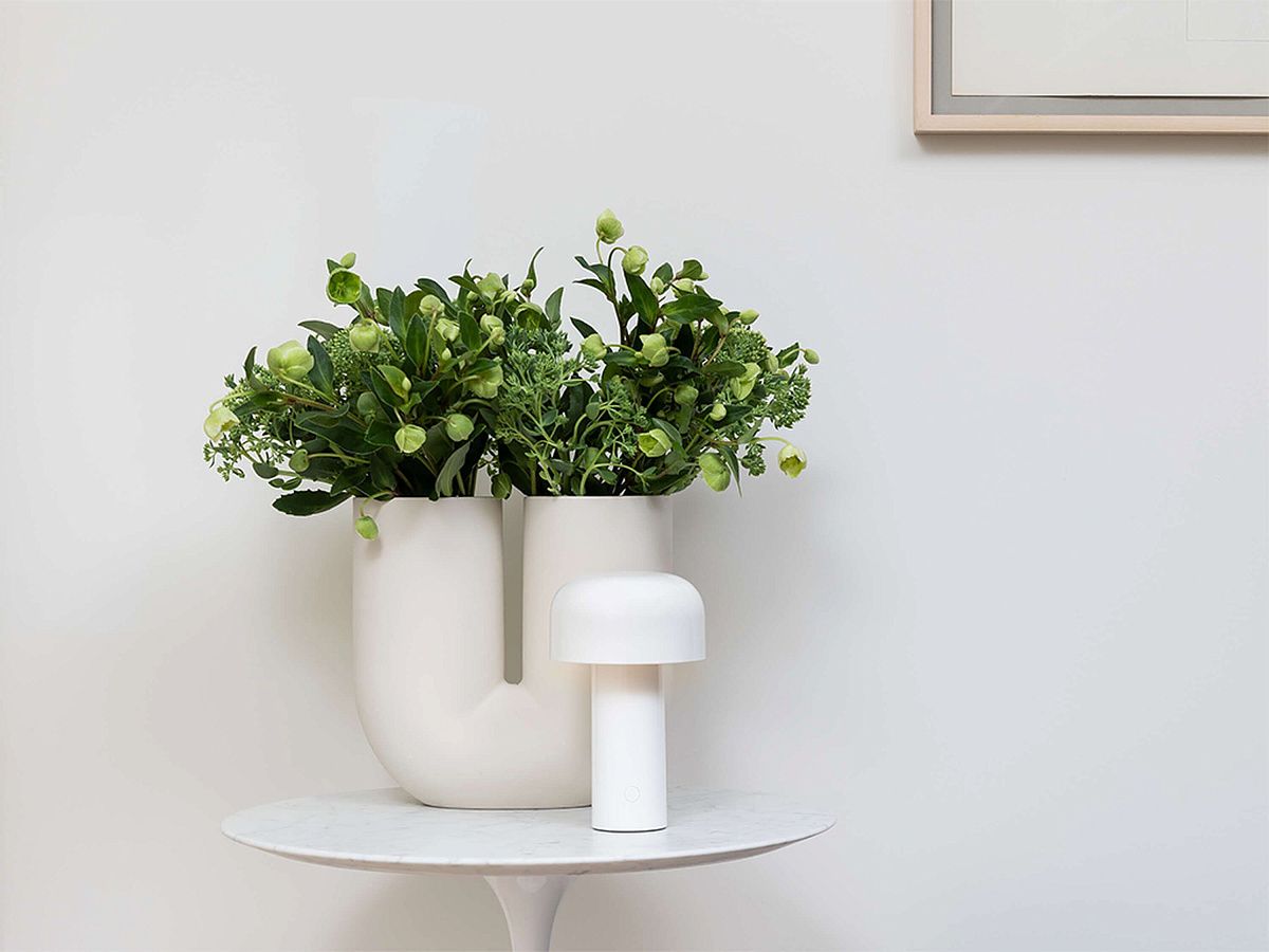 Перезаряжаемое настольное осветительное устройство прямого света. Основание и купол из цветного ПК. Рассеиватель из опалового поликарбоната, отлитого под давлением, с фотогравировкой. Автономность 24 часа, зарядка через Micro-USB-C. Кнопочный переключатель, расположенный на основании, обеспечивает 4-ступенчатую функцию диммера. Индикатор состояния батареи расположен под основанием. В комплект входит зарядный кабель USB-C, полезная длина 120 см.