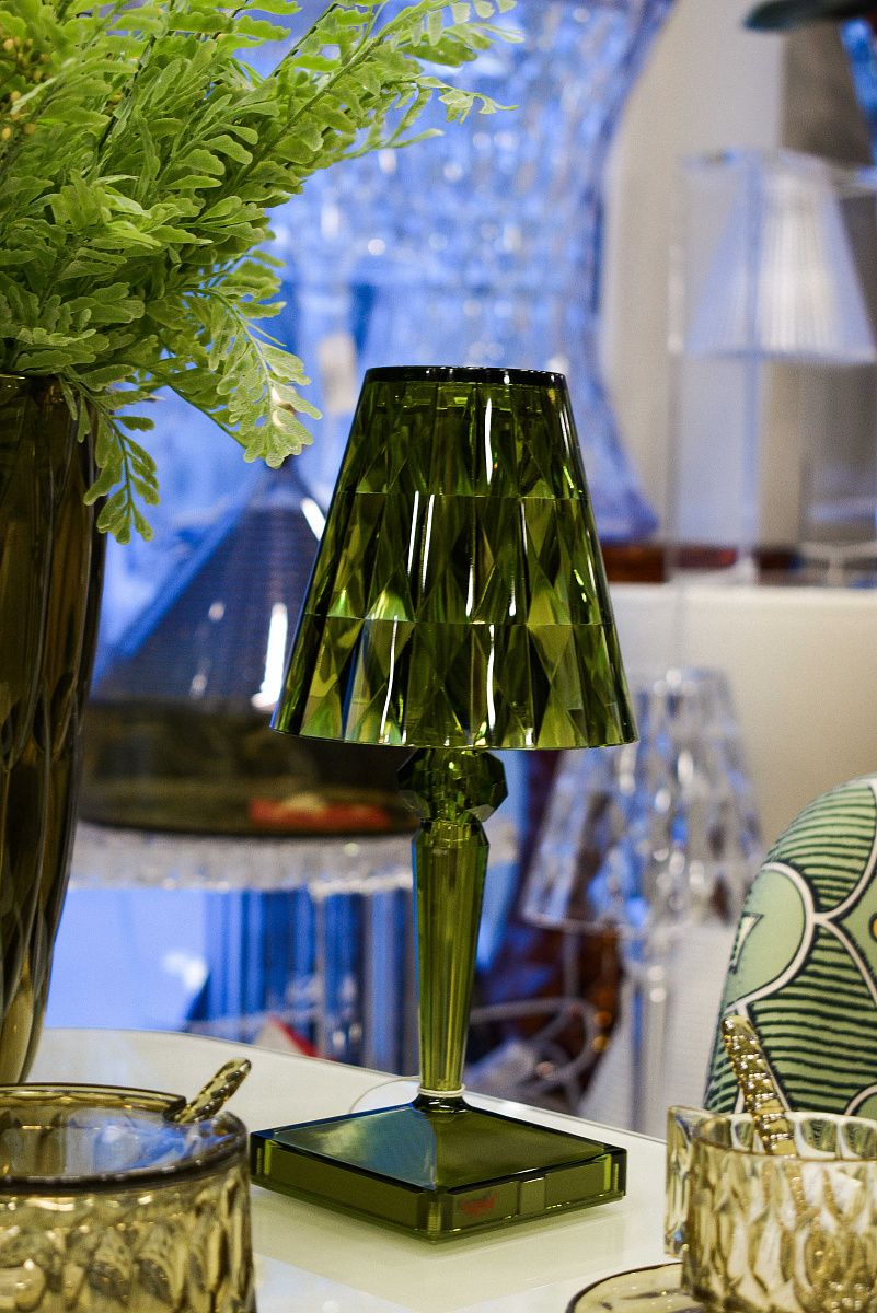 Настольная лампа Big Battery отличается шикарным инновационным дизайном, который подойдет для множества применений, и имеет классический силуэт, состоящий из граненого материала ПММА, который при освещении преломляет красивое множество света. Включает прямой источник питания. Доступен в цветах Crystal, Cola, Light Blue или Plum.