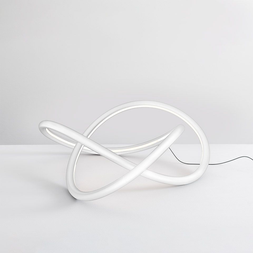 Idyllium — это подвесной светильник и торшер, в котором форма, структура и свет сливаются в единое, непрерывное целое. Модульная дуга, образованная трёхмерной кривой, складывается в пространстве, создавая текучую и светящуюся структуру. Изгиб направляет свет во всех направлениях, мягко и равномерно распределяя его, а открытая и воздушная форма очерчивает пространство, не замыкая его в себе. Не имея привилегированной ориентации — подобно сфере — светильник сохраняет равновесие под любым углом. Не монолитная масса, а световой след, взаимодействующий с окружающей средой.