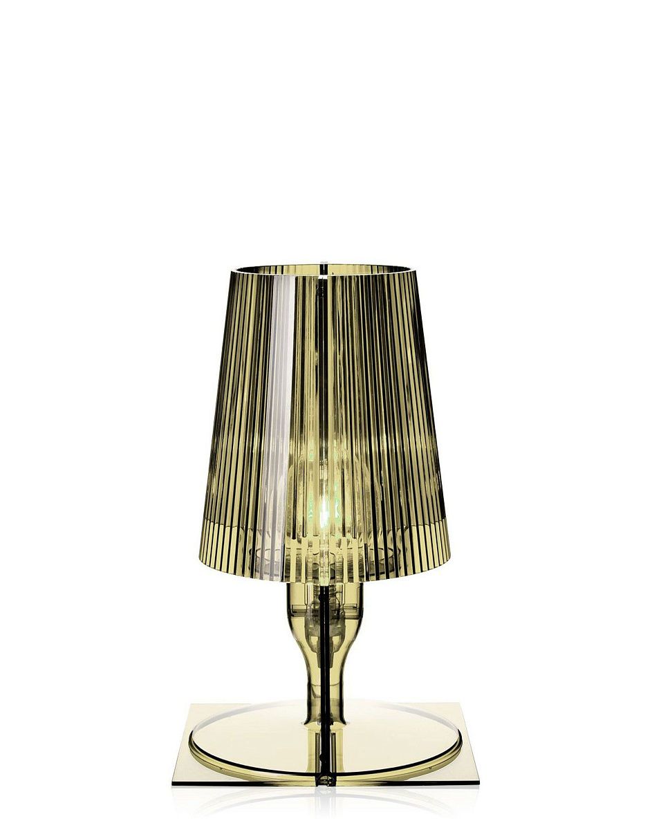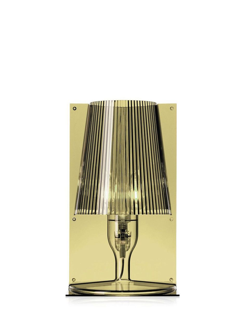 Классический образ прикроватной лампы переосмыслен технологиями Kartell, превратившись в промышленный продукт в разнообразных цветовых оттенках. Форма Take – результат соединения двух зеркальных частей: двух плоских прямоугольных пластин, которые, будучи двумерными в центре, приобретают форму и объём «полулампы». Внутренняя складка рассеивателя украшает предмет, создавая при освещении игру отражений.