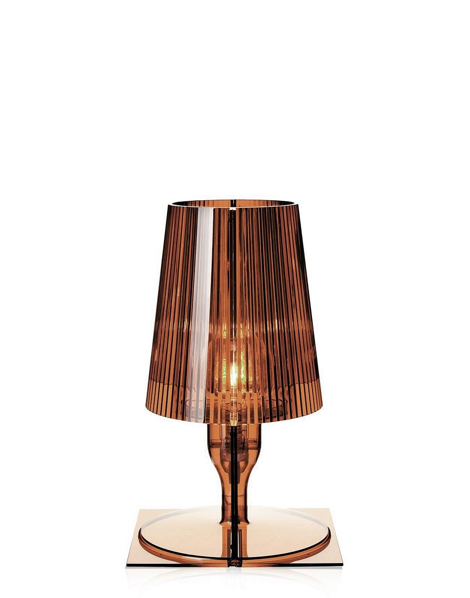Классический образ прикроватной лампы переосмыслен технологиями Kartell, превратившись в промышленный продукт в разнообразных цветовых оттенках. Форма Take – результат соединения двух зеркальных частей: двух плоских прямоугольных пластин, которые, будучи двумерными в центре, приобретают форму и объём «полулампы». Внутренняя складка рассеивателя украшает предмет, создавая при освещении игру отражений.