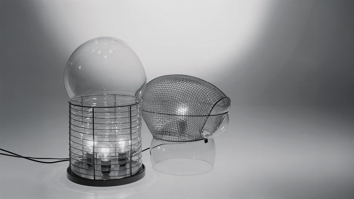 Artemide представляет Alcinoo спустя пятьдесят лет после создания оригинального дизайна. Созданный совместно с Patroclo, он использует ту же технику ручной выдувки стекла, помещённого в металлический каркас. В Alcinoo металлическая клетка следует регулярному узору, образуя цилиндрический объём, который открывается в плавно перетекающую стеклянную сферу в верхней части. Сущность материалов и способ их обработки определяют дизайн. Каждое изделие изготавливается вручную, создавая баланс между стеклом и металлом, создавая баланс лёгкости и прочности. Металлическая клетка смягчает вид трёх внутренних источников света, фильтруя свет и отбрасывая тонкие тени на поверхность. Как и Patroclo, Alcinoo оживает благодаря свету.
