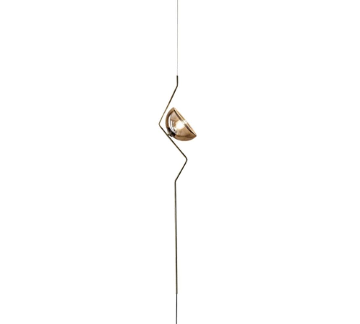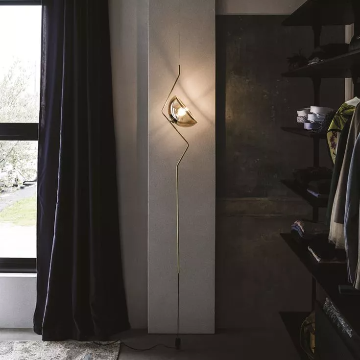 Подвесной торшер Tramonto - утонченный аксессуар с очарованием минимализма. Простой, но очаровательный латунный стержень поддерживает полусферический абажур в ретро-стиле. Дымчатое стекло fumè обеспечивает мягкий рассеивающийся свет.Этот современный торшер задуман для создания изысканной атмосферы в современной гостиной или в самых интимных комнатах дома.