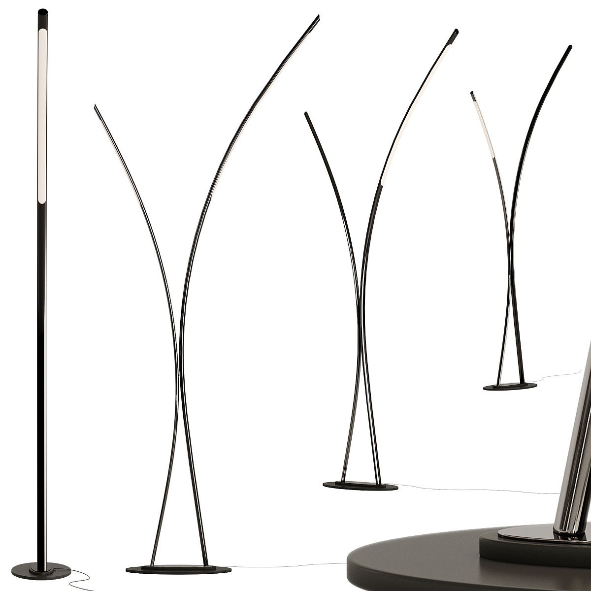 Современный торшер Twin дополняет домашнюю среду простой и, вместе с тем, причудливой формой. Конструкция этой удлиненной современной лампы состоит из двух тонких, почти одинаковых стальных проводов со светодиодными лампами, которые равномерно освещают комнату, и поддерживается круглым основанием с простым и элегантным дизайном. Это - универсальный мебельный аксессуар, который может вписаться в различные контексты, рядом с диваном или элегантным уголком для чтения.