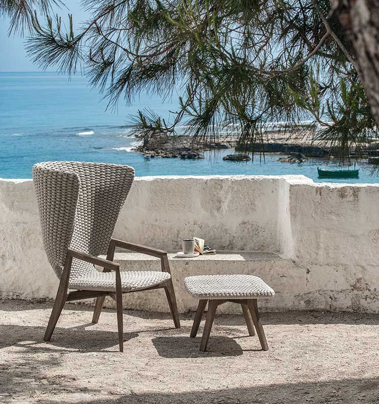 Knit — это полная линейка столов, стульев и шезлонгов из тика и плетёного каната, которая изысканно воплощает собой идеальный синтез эстетики, функциональности и эргономики. Культовая коллекция дополнена новой версией из протравленного тика и светло-серого каната, а также креслом-качалкой с высокой спинкой, предлагая новую и уникальную интерпретацию классического кресла-бержера. Уютное кресло с высокой спинкой, диван, кресло-качалка — вот лишь некоторые элементы предложения, которое постоянно развивается даже в плане отделки и цветовой гаммы. Светло-серый канат сочетается с протравленным тиком, подчеркивая естественную текстуру древесины. Мягкие диваны и обеденные гарнитуры создают атмосферу спокойного и веселого времяпрепровождения. Идеальное сочетание формы и фактуры, создающее захватывающие тактильные и визуальные ощущения, коллекция Knit предлагает динамичный и современный взгляд на жизнь на открытом воздухе.