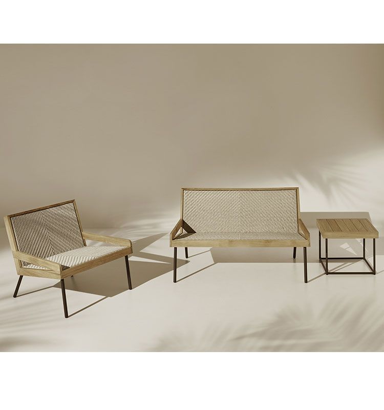 Коллекция уличной мебели Allaperto Nautic от итальянчкого бренда Ethimo стильный выбор с морским настроением для летних загородных террас, в котором лаконично сочетается тик с полипропиленовым канатом — перерабатываемым и на 100% наружным материалом. Allaperto Nautic черпает вдохновение в морском мире и сочетает в себе тик с ремесленным плетением веревок «елочкой», что придает сиденьям индивидуальность, обеспечивая долговечность и прочность.