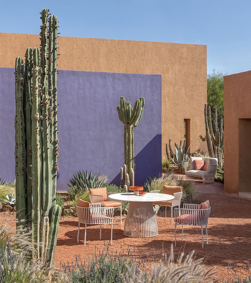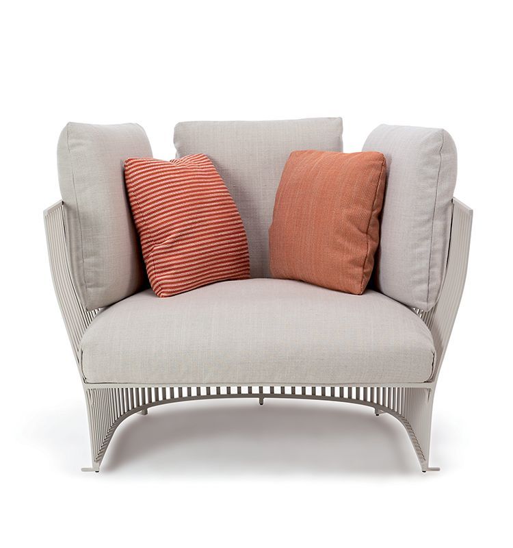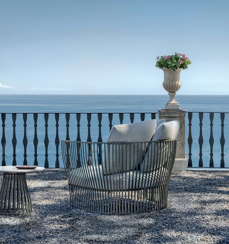 Элегантность городской мебели конца XIX века возрождается в проекте, сочетающем в себе вневременное очарование и современную функциональность. Алюминиевая конструкция, визуально напоминающая старинные перила, характеризует диваны, кресло и обеденный гарнитур, придавая просторным и округлым формам сиденья одновременно ощущение лёгкости и прочности. Коллекция Venexia дополнена новым меловым цветом, подчёркивающим её дизайн. Мягкие диваны уютные и комфортные, низкие столики гармонично сочетают камень и алюминий. Тёплые оттенки обивки создают ощущение связи с землёй.