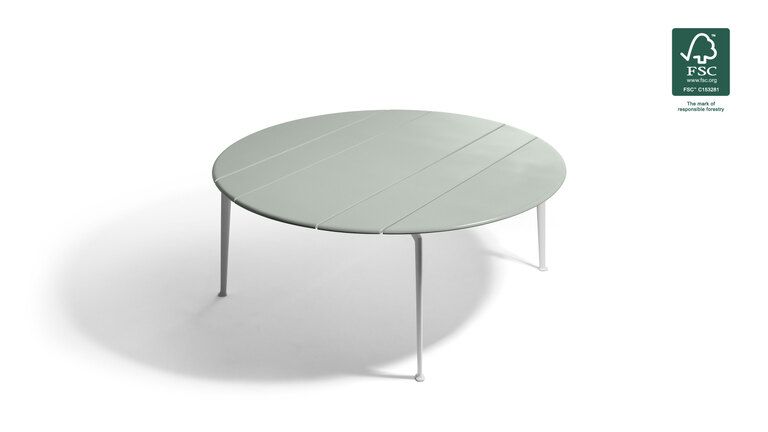 Круглый стол Solaria для улицы вдохновлён природой: его столешница выполнена из деревянных планок, что придаёт ему тёплую текстуру. Литые алюминиевые рамы с изысканной покраской подчёркивают общую изысканность изделия. Каркас стола изготовлен из прочной нержавеющей стали с порошковым покрытием в различных вариантах отделки. Ножки из литого алюминия также имеют порошковое покрытие. Столешница может быть изготовлена из тика в натуральном цвете или из глазурованного керамогранита различных цветов. Круглый стол доступен с отверстием в центре для тика или без него, а также без отверстия для керамогранита. Стол поставляется с защитным чехлом. Круглый стол для улицы Solaria изготовлен из древесины, на 100% сертифицированной FSC™.