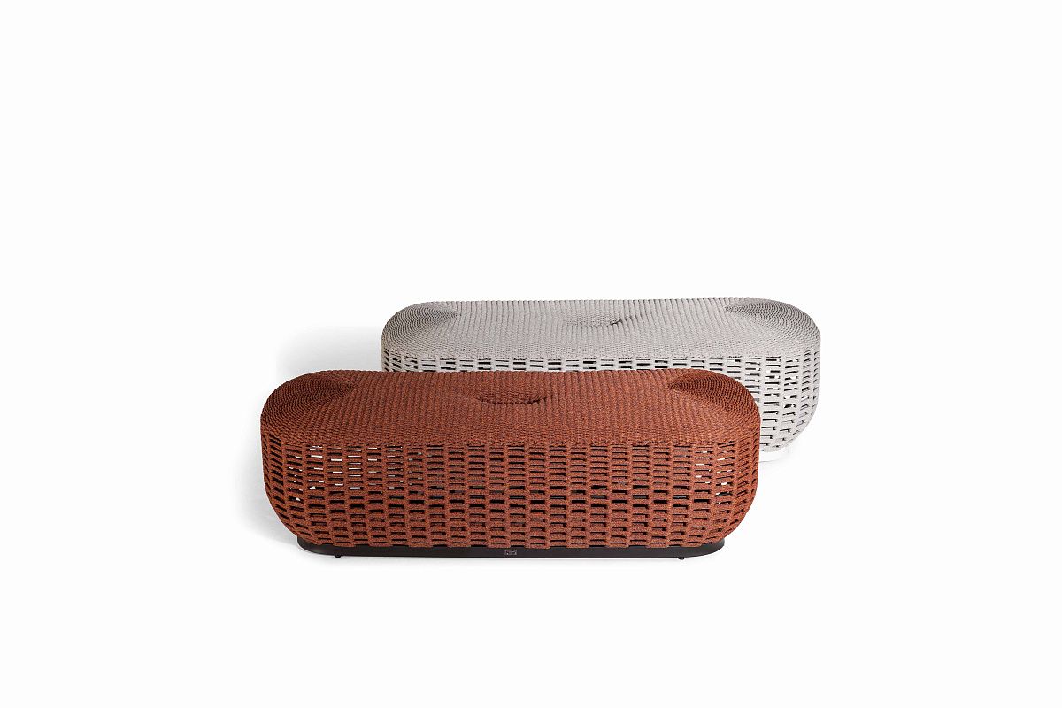 Коллекция пуфов Leplì для улицы, разработанная Кенсаку Осиро, родилась на основе успешной версии для помещений. Сохранены оригинальные формы, напоминающие женские силуэты. Добавлен плетёный мотив, аналогичный коллекции уличных светильников Sparkler. Полипропиленовые струны, оплетающие алюминиевую основу, создают уникальный эффект прозрачности и лёгкости. Пуф доступен в трёх цветовых сочетаниях.