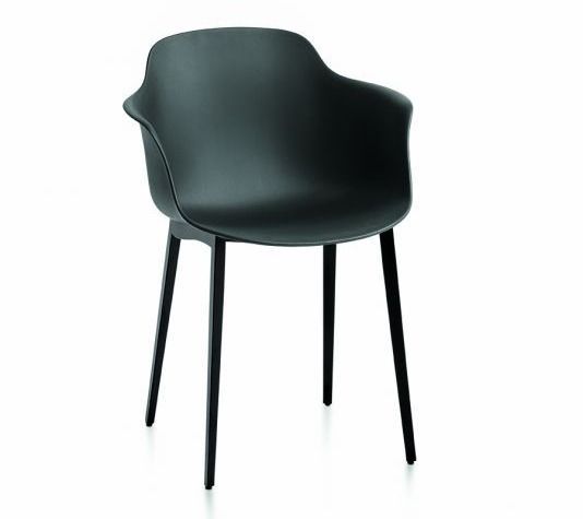 Стул, стул с подлокотниками, со структурой из лакированной стали для использования внепомещений, монолитное сидение из полипропилена.