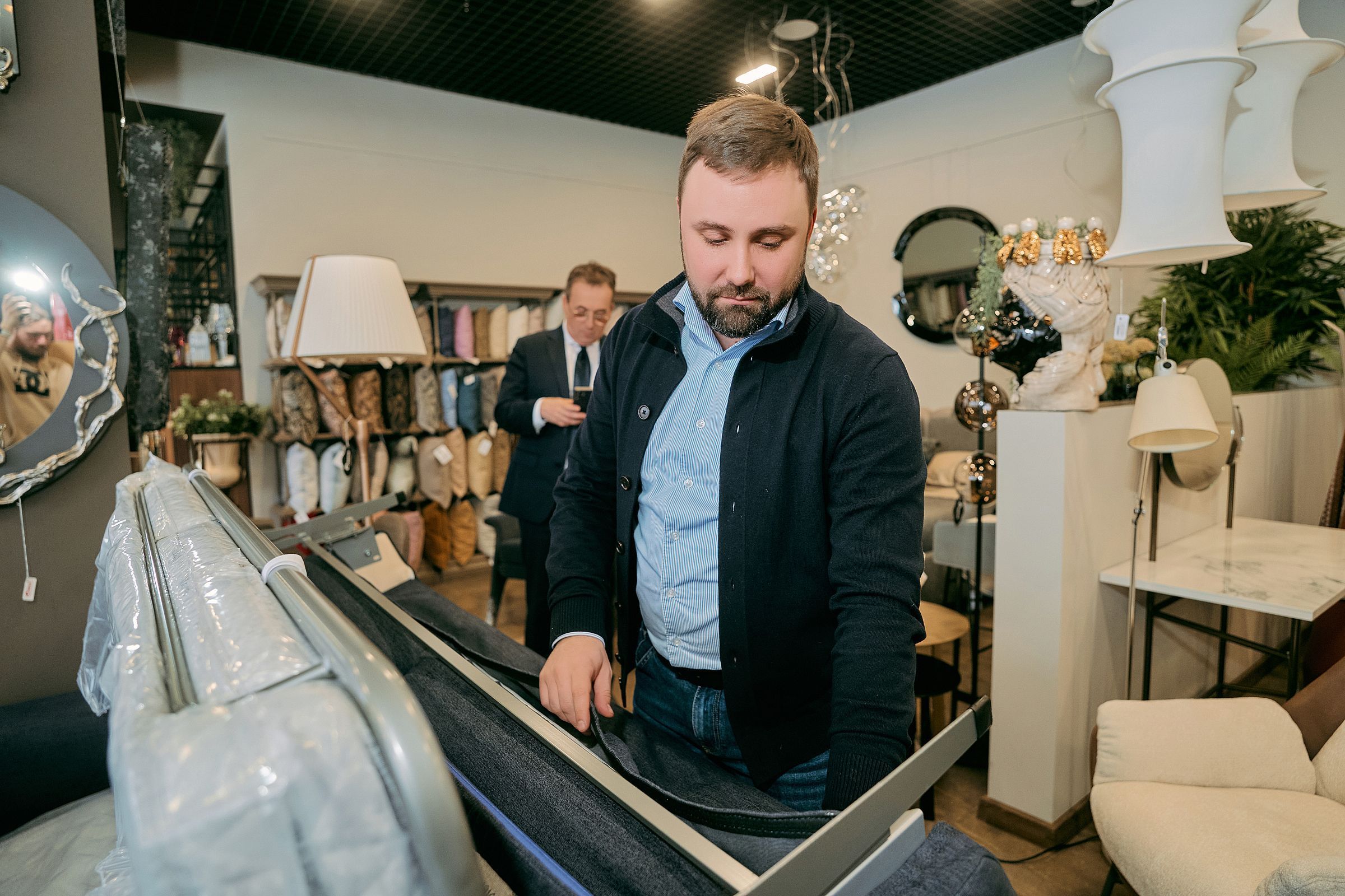 В рамках семинара Микелле и Дмитрий рассказали о фабриках, их продукции, новинках, рассказали о производстве и премиальных материалах отделки. Также в рамках семинара был презентован новый бренд итальянской мебели – Albani. Фабрика Albani Divani находится рядом с фабрикой Poltrona Frau. Продукция бренда Albani – исключительно ручная работа и может изготавливаться под индивидуальный размер. Большой ассортимент отделок из натуральной кожи, велюра, ткани букле и тд, позволяет воплотить любые интерьерные задумки.